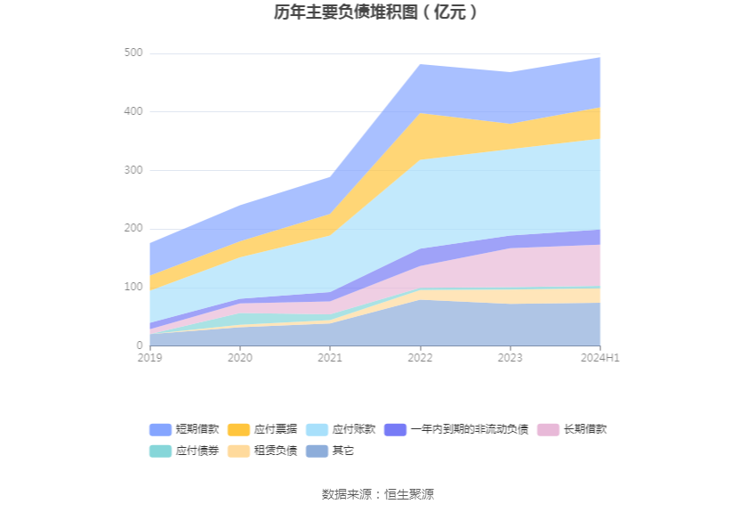 负债重大变化方面,截至2024年上半年末,公司应付票据较上年末增加23.52%,占公司总资产比重上升1.08个百分点;应付账款较上年末增加4.92%,占公司总资产比重上升0.28个百分点;一年内到期的非流动负债较上年末增加21.39%,占公司总资产比重上升0.47个百分点;长期借款较上年末增加5.38%,占公司总资产比重上升0.17个百分点。