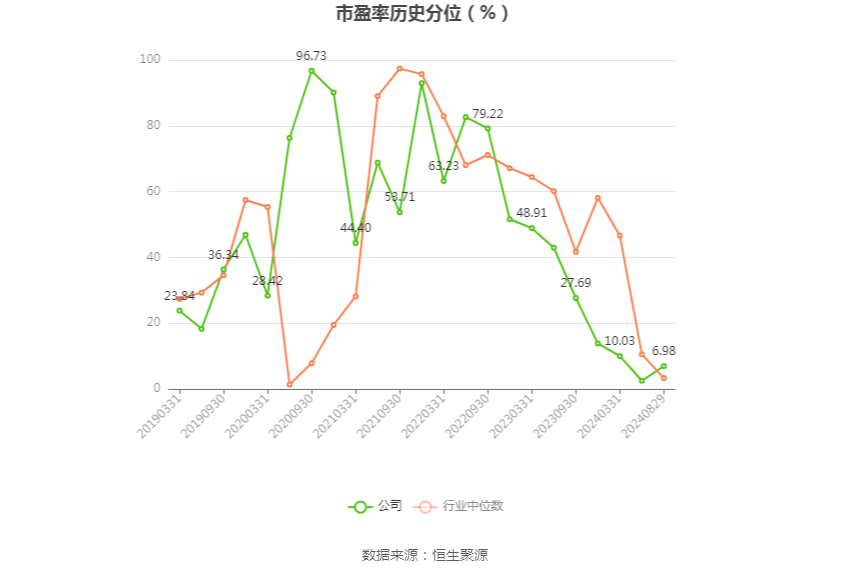 市盈率为负时,不显示当期分位数,会导致折线图中断。