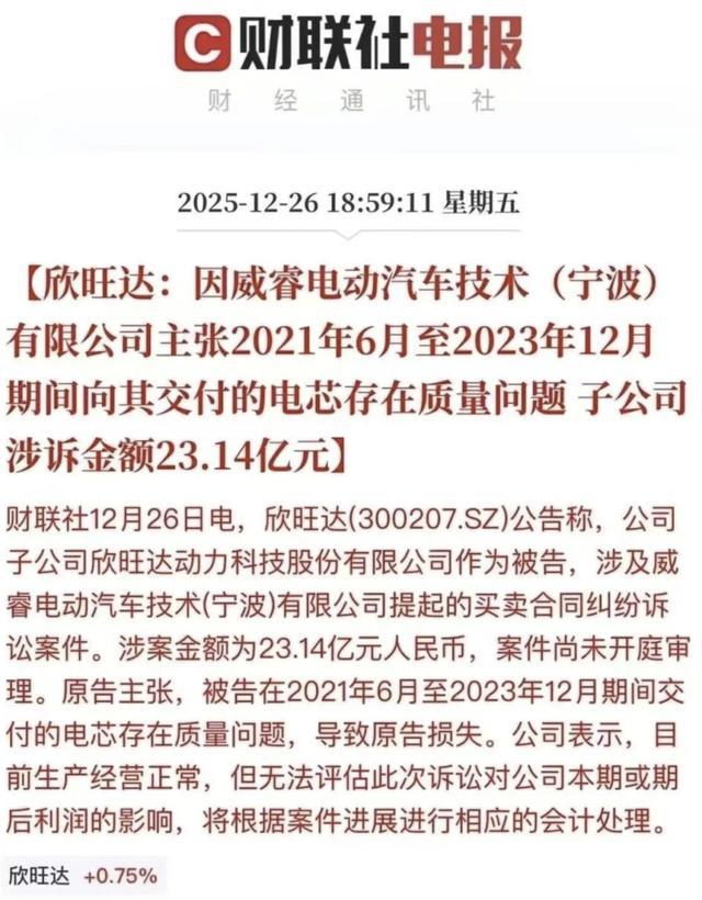 最近几天,国内新能源汽车圈最热的一件事,就是吉利汽车旗下的极氪汽车(威睿电动汽车有限公司)起诉了国内著名的动力电池制造厂商欣旺达动力。起诉事由为买卖合同纠纷,具体的情况是2021年6月到2023年12月,欣旺达向极氪汽车提供的动力电池存在质量缺陷,对极氪汽车造成了损失,所以极氪汽车方面向欣旺达要求赔偿损失23.14亿元,此事一经爆出,在行业内引起了轩然大波。