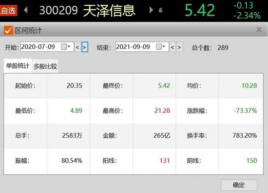 9月9日,天泽信息股价下跌2.34%,5.42元的收盘价,只有一年前的25%左右。“打了对折再打了个对折!”有投资者感慨。