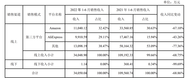 值得注意的是,天泽信息跨境电商业务业绩仍在持续下滑,今年上半年天泽信息跨境电商出口业务收入实现 3.41 亿元,相比 2021 年上半年的 10.96 亿元,下滑了 68.86%。