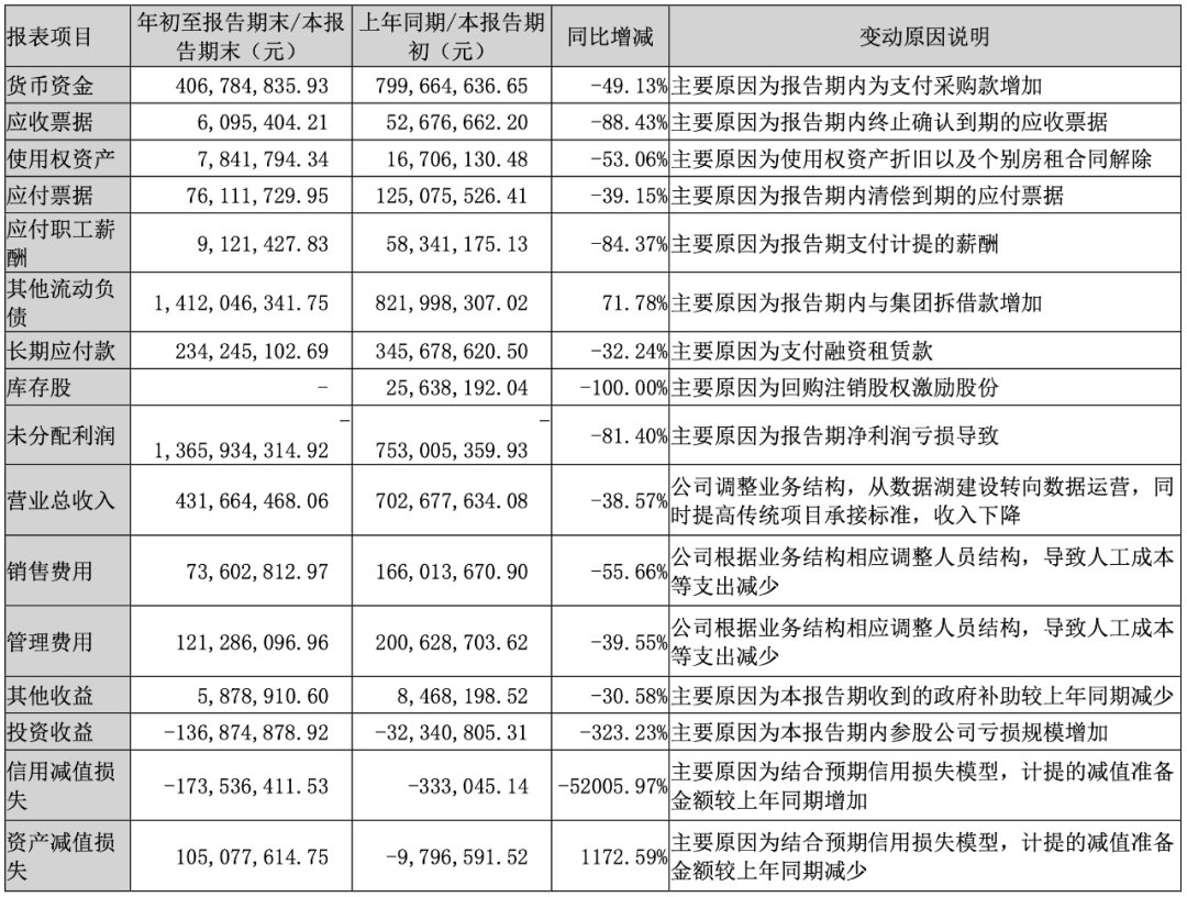 营收减少原因:调整业务结构,从数据湖建设转向数据运营,同时提高传统项目承接标准,收入下降。