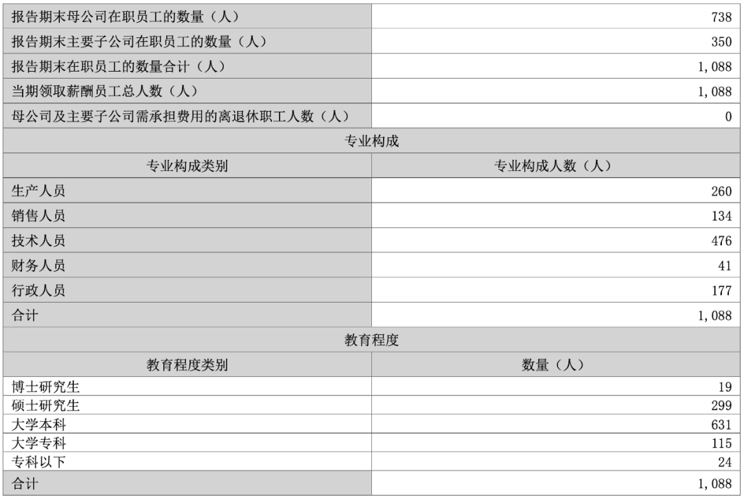 截止 2023 年 12 月 31 日,员工共 1088 人: