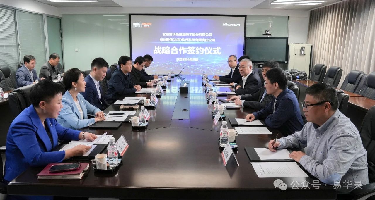 4月8日,易华录与海纳医信在北京正式签署战略合作协议。中国工程院院士王振常,华录集团党委委员、董事、副总经理张继军,易华录党委副书记、董事、总经理肖益,海纳医信董事长崔彤哲等出席签约仪式。易华录副总经理梁敏燕、海纳医信总裁张前胜代表双方签署合作协议。易华录党委常委、董事、副总经理周福全,海纳医信首席科学家周永新、副总经理韩宇见证签约。