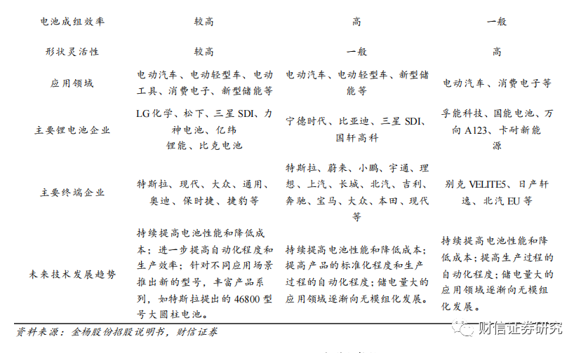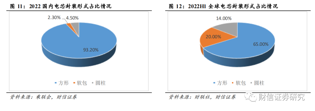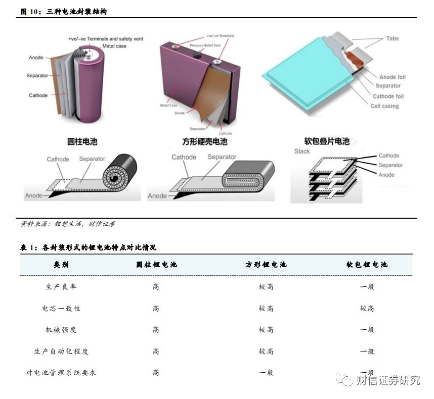 2.1.1 电池封装形式包括方形、圆柱与软包,三种形式各有优劣