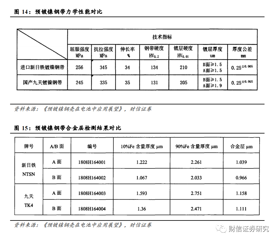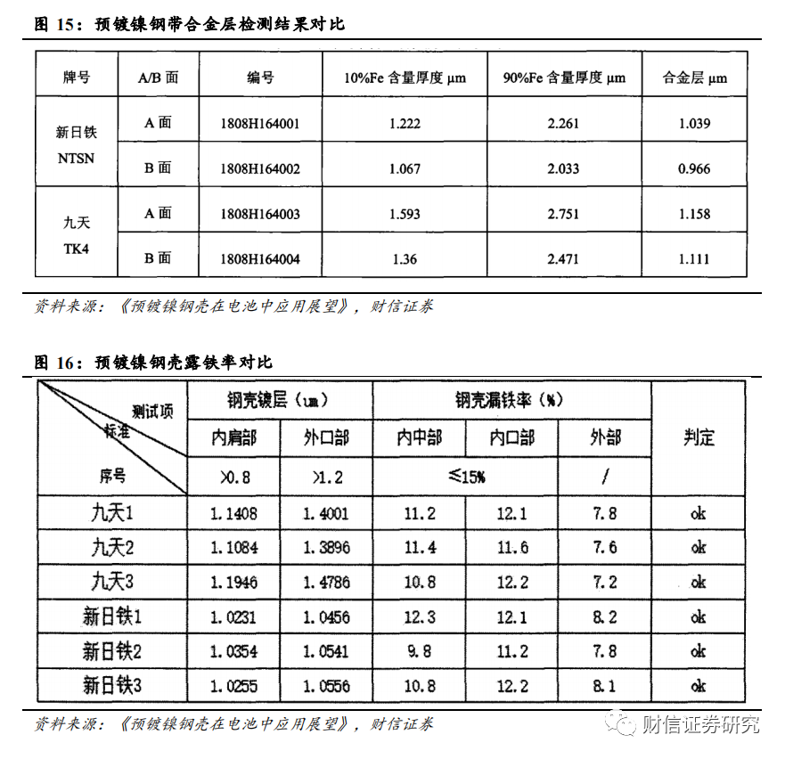 产品性能与海外龙头公司新日铁在同一水平:公司的预镀镍钢带在力学性能、外观特征、渗透合金层厚度、漏铁率等关键性能上与海外先进产品的性能基本持平或略有超出。