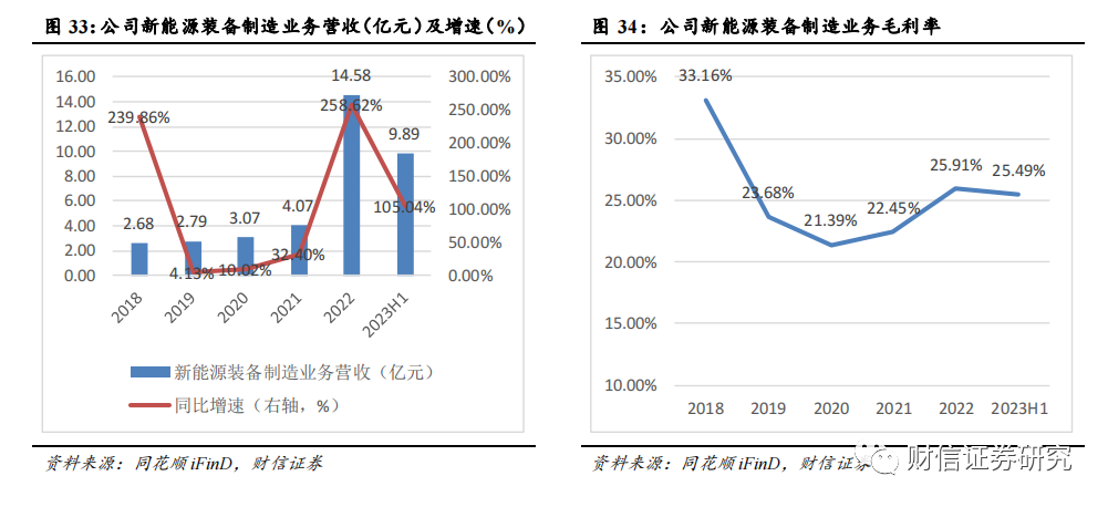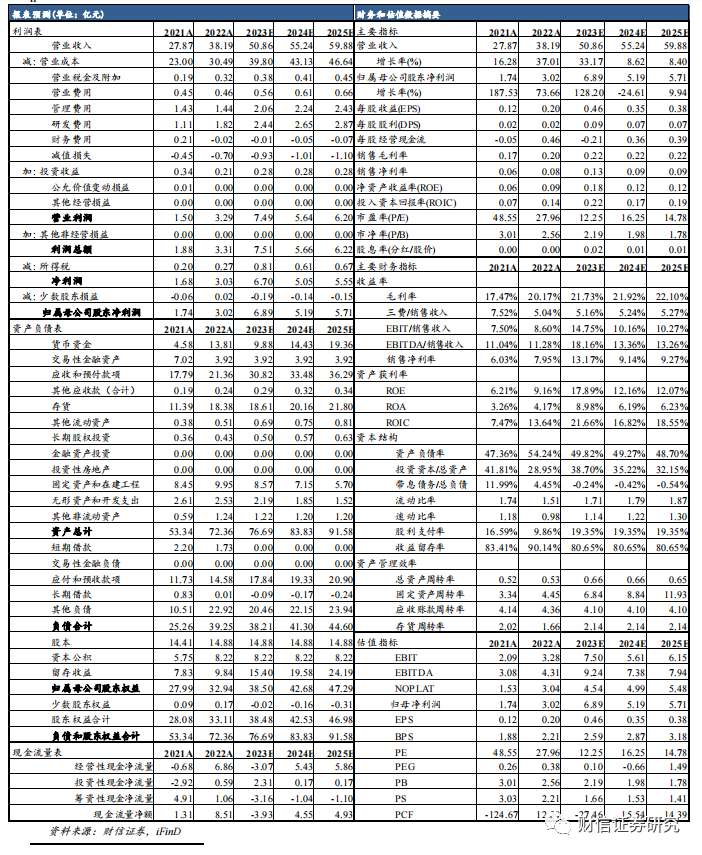 (1)新能源装备业务:根据积累在手订单情况,公司多晶硅还原炉和冷氢化电加热器近两年承接订单量实现高速增长,预计2023年营收仍能保持高增,同时熔盐储能、高炉炼钢电加热器等新业务将逐步贡献增量。预计2023-2025年公司工业装备收入25.00/22.50/18.00亿元,同比+71.50%/-10.00%/-20.00%,毛利率25.50%/25.00%/24.50%。