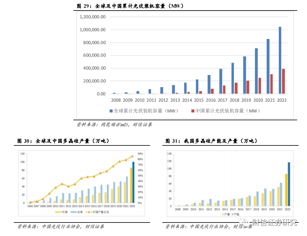 2023年上半年,光伏行业上游硅料新建产能不断释放,多晶硅市场供过于求,多晶硅价格持续下跌,推动行业成本下降,项目投资更加理性;同时,在碳达峰碳中和目标引领和全球清洁能源加速应用背景下,中国光伏产业总体保持高速增长,下游应用市场需求持续旺盛,对多晶硅长期需求形成有力支撑。根据中国光伏行业协会统计的数据,全国光伏产业链主要环节保持强劲发展势头,同比增幅均在60%以上,其中:多晶硅环节,上半年全国产量约60.6万吨,同比增长66.61%;组件环节,上半年全国产量超过204GW,同比增长65%,出口108GW,同比增长37.3%。
