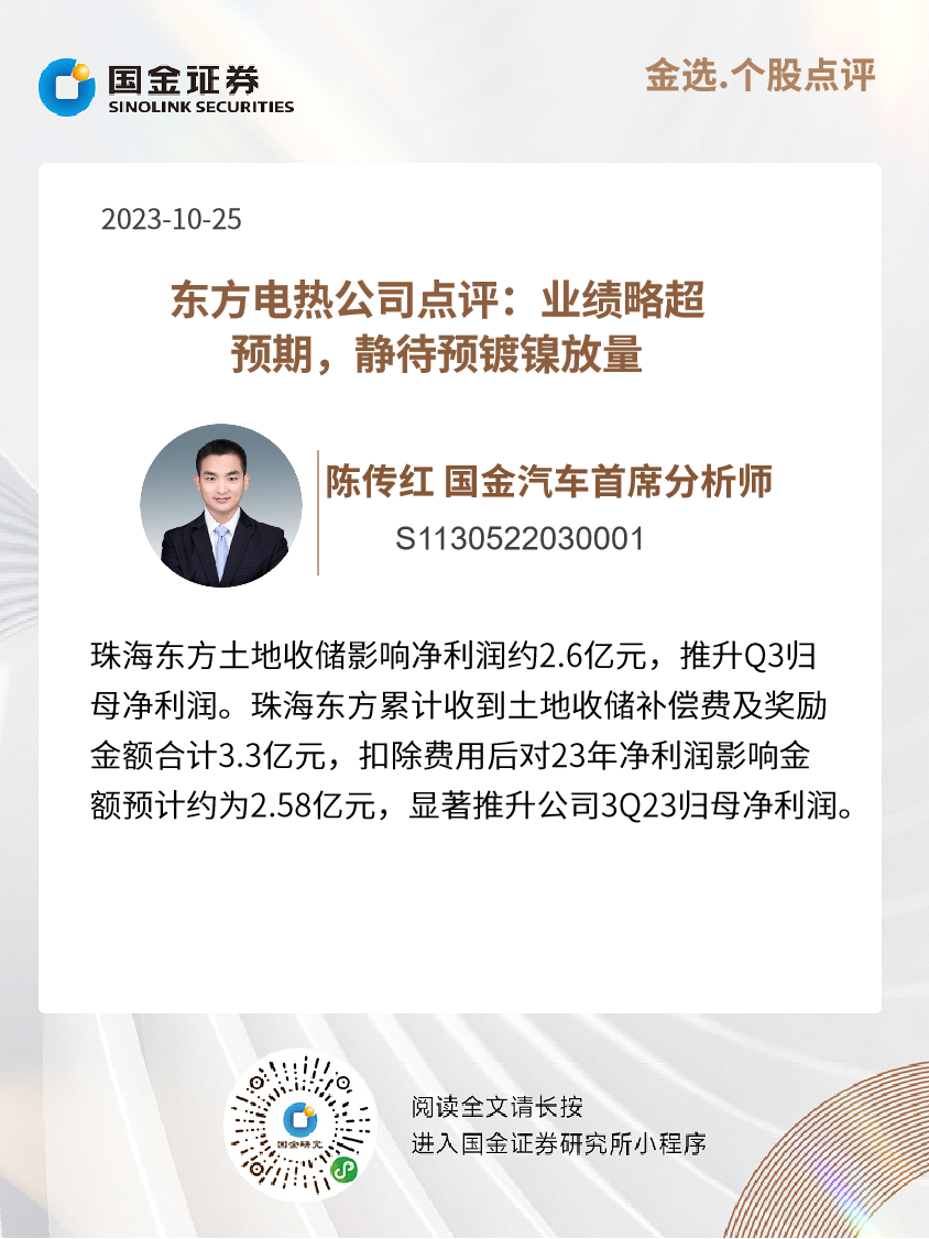 1、珠海东方土地收储影响净利润约2.6亿元,推升Q3归母净利润。珠海东方累计收到土地收储补偿费及奖励金额合计3.3亿元,扣除费用后对23年净利润影响金额预计约为2.58亿元,显著推升公司3Q23归母净利润。