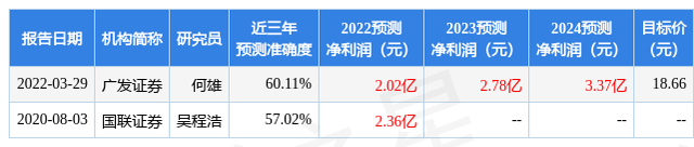 以下是详细的盈利预测信息: