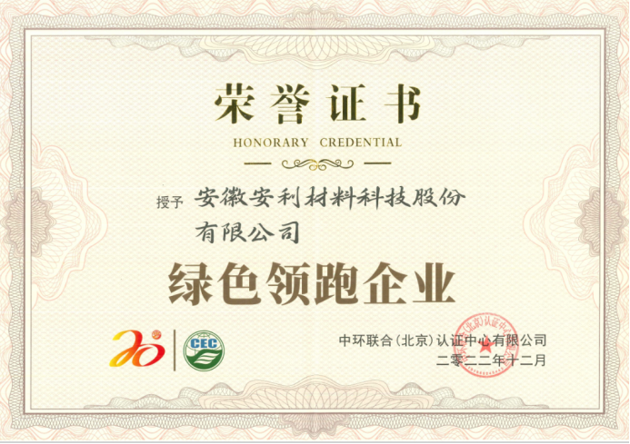 近日,安利股份(300218.SZ)获得由中环联合(北京)认证中心授予的“绿色领跑企业”荣誉称号。公司是全国合成革行业唯一一家获此荣誉的企业。此次获评是对安利股份行业地位以及公司长期积极推进绿色生产、为环境所做贡献的高度认可。