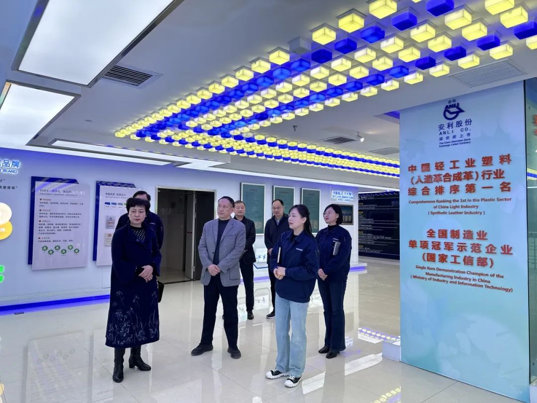 调研组参观了安利股份展厅,观看企业宣传片,仔细听取刘松霞副总经理关于企业概况、发展历程、技术创新、产品应用、市场开拓等情况的介绍,饶有兴致地拿起公司产品、样品册、苹果妙控键盘等现场体验,对色彩靓丽、质感优良、用途广泛的安利生态功能性聚氨酯复合材料赞口不绝。调研组表示,安利品牌响亮,企业美誉度高,产品应用广泛,纷纷称赞安利材料是全球都用的高新美好材料,市场前景广阔。