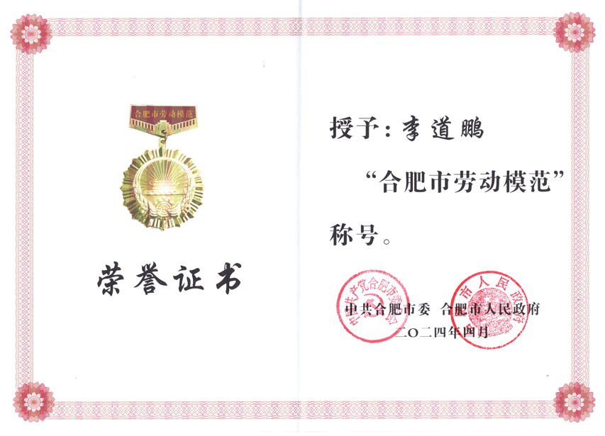 对于自己当选“合肥市劳动模范”,李道鹏表示:“当选为合肥市劳动模范不仅是肯定和鼓舞,更是激励和鞭策,意味着更多的责任和担当,我将充分发挥劳模的示范引领作用,干在实处、走在前列,为公司高质量发展作出新的更大贡献。”