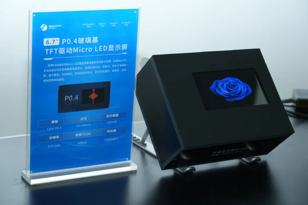 该款采用COG技术的P0.4 Micro LED直显屏幕具备优异的显示效果,屏幕墨色一致性高,可达到更高的对比度和更出色的画质,在低灰阶表现尤为出色。产品利用AM+TFT主动式驱动,可实现高像素密度显示,画面过渡均匀,无频闪。