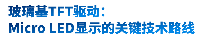 玻璃基+TFT驱动,即采用半导体、光刻和先进铜工艺,在大面积玻璃基板上实现超精细的TFT驱动结构,通过使用COG封装的行列驱动芯片极大的减少显示屏驱动芯片的使用数量,满足大尺寸Micro LED显示屏制作需求。