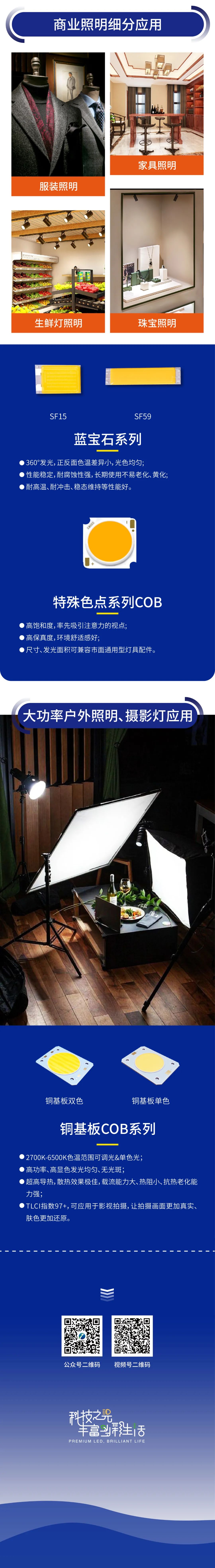 随着照明产业的发展,COB封装产品越来越受到市场的青睐。无论是在商业照明、家居照明、还是户外大功率照明领域,光品质更佳的COB光源产品渗透率都在逐步提升,发展前景可期。