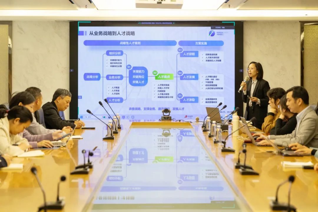首先,集团 HRD 陈淑芬进行战略性人才盘点说明。当前,集团正以“一体两翼”产业发展战略为指引,全力扩大全球 LED 照明封装市场占有率。她强调,通过人才盘点全面梳理人才账本,建立高效的人才供应体系,为关键业务的快速发展提供有力支撑,是承接战略、支撑业务、激活组织、发展人才的关键举措。随后,北森项目顾问洪柳老师对测评工具、操作流程等进行了介绍。