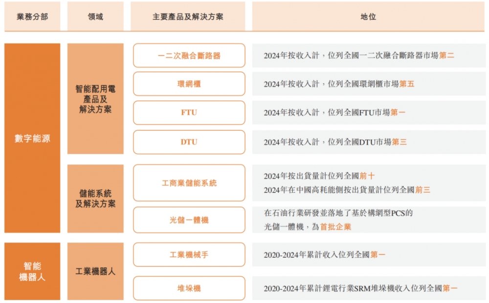 科大智能主营业务为数字能源和智能机器人,其中数字能源主要产品包括一二次融合断路器、环网柜、馈线终端单元(「FTU」)、配电终端单元(「DTU」)、低压台区及用电信息采集系统以及储能系统及解决方案等;智能机器人主要为电网企业及大型工业客户提供包括工业机械手、堆垛机及巡检机器人在内的产品及解决方案。