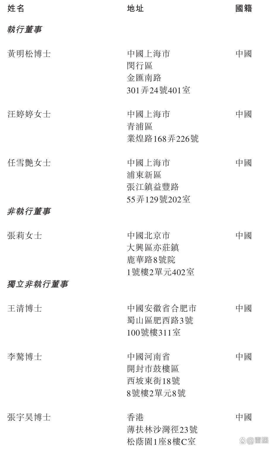 科大智能执行董事分别为黄明松博士、汪婷婷女士、任雪艳女士;非执行董事为张莉女士,独立非执行董事分别为王清博士、李骜博士、张宇昊博士。