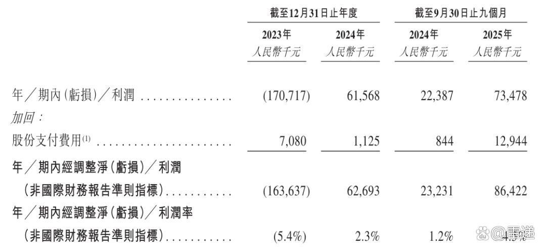 科大智能2023年、2024年经调整净利分别为-1.64亿、6269万元;2025年前9个月经调整净利为8642万元,经调整净利率为4.5%。