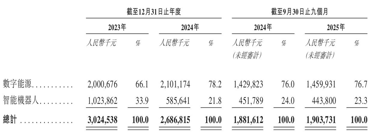 随之而来的,是整体收入结构进一步向数字能源业务集中,该板块在2024年的营收占比已超过78%。2025年前九个月,数字能源业务占比继续保持在76.7%以上。