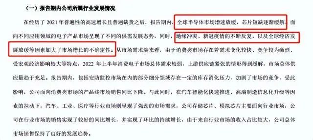 在半年报中,北京君正也曾提到,“全球半导体市场增速放缓,芯片短缺逐渐缓解”、“地缘冲突以及全球经济发展放缓等因素加大了市场增长的不确定性。”