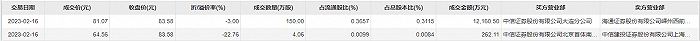 北京君正2月16日大宗交易成交154.06万股,成交额1.24亿元,占当日总成交额的6.98%,成交均价80.63元,较市场收盘价83.58元折价3.53%,其中最高成交价81.07元,最低成交价64.56元。