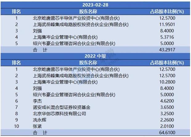 在北京君正股东持股的比例情况方面,公司2023年2月发布公告,“上海集岑”计划在2022年11月22日至2023年5月21日期间以集中竞价方式减持所持有公司股份963万股,占本公司的总股本比例不超过2%,目前已完成减持比例1.5%。截止到2023年2月份,根据公司公开资料显示,韦尔股份旗下的“绍兴韦豪企业管理咨询合伙企业”持股比例仍是5%,此前在2022年3月24日至2022年5月19日,其以自有资金约15.18亿元通过二级市场集中竞价增持北京君正1.86亿股。