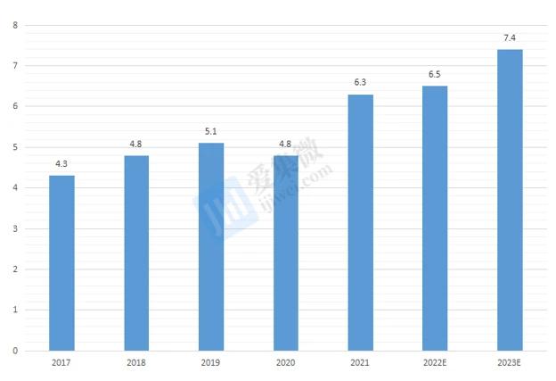 图11:2017-2023年全球IPC SoC市场规模预测(亿美元)
