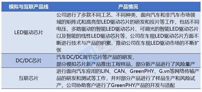 北京君正模拟与互联产品线是比较新的业务线,主要包括LED驱动芯片、触控传感芯片、DC/DC芯片、车用微处理器芯片、LIN、CAN、GreenPHY、G.vn等网络传输芯片,主要面向汽车、工业、医疗及高端消费类市场,可向客户提供丰富的车内、车外照明芯片解决方案。该类业务的主要收入主要来源于各类LED照明驱动芯片,市场成长也较为迅速,尤其在汽车电子市场,公司拥有丰富的车规级LED驱动芯片,包括头灯、日间行车灯、远光灯、雾灯、转向灯、组合尾灯、牌照灯等驱动芯片。
