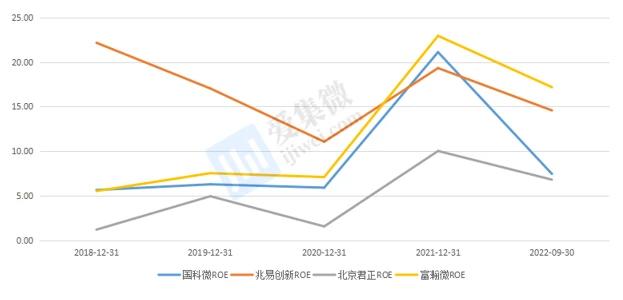整体来看各公司的ROE经营水平,受周期影响波动性较大,2021年各公司的ROE都处于历史高位,进入到2022年的去库存周期,公司盈利能力进入到下行周期。国科微有最大幅度的降幅,从2021年21%降到2022年Q3的7%,而其余三家公司虽受库存周期影响,但是产品的多样性有效缓冲了市场消费电子的需求下行,在四季度和明年一季度下游厂商完成库存出清后,预期北京君正的ROE经营水平会得到快速的反转。