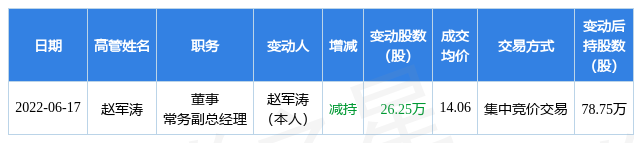 证券之星讯,根据6月20日市场公开信息、上市公司公告及交易所披露数据整理,正海磁材(300224)(300224)最新董监高及相关人员股份变动情况:2022年6月17日公司董事,常务副总经理赵军涛共减持公司股份26.25万股,占公司总股本为0.032%。变动期间公司股价上涨4.19%,6月17日当日收盘报14.17元。