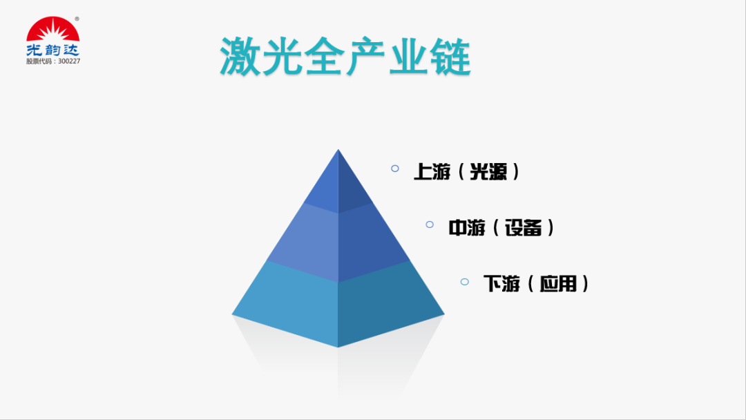 从纵向布局激光与智能制造产业链到横向拓展激光及智能技术的应用领域,到现在的向上游激光器的扩展布局,形成了光韵达全激光产业生态链。