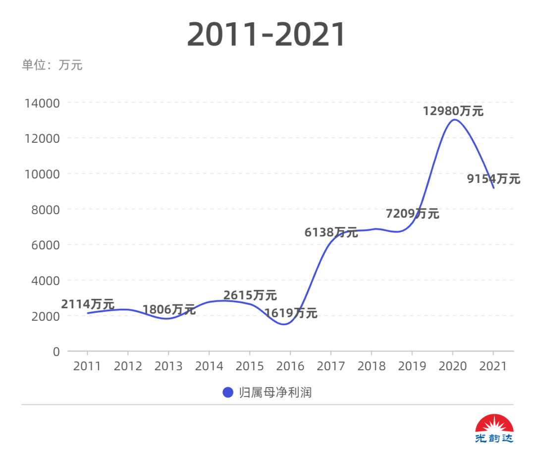2011年-2021年,归属母净利润由千万元增长接近亿元,年均增长率33%+。