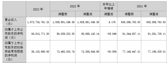 2020年至2023年,光韵达归属于上市公司股东的净利润分别为1.30亿元、9159.17万元、8006.81万元、5681.58万元,归属于上市公司股东的扣除非经常性损益的净利润分别为1.15亿元、7719.65万元、7350.06万元、3612.57万元。