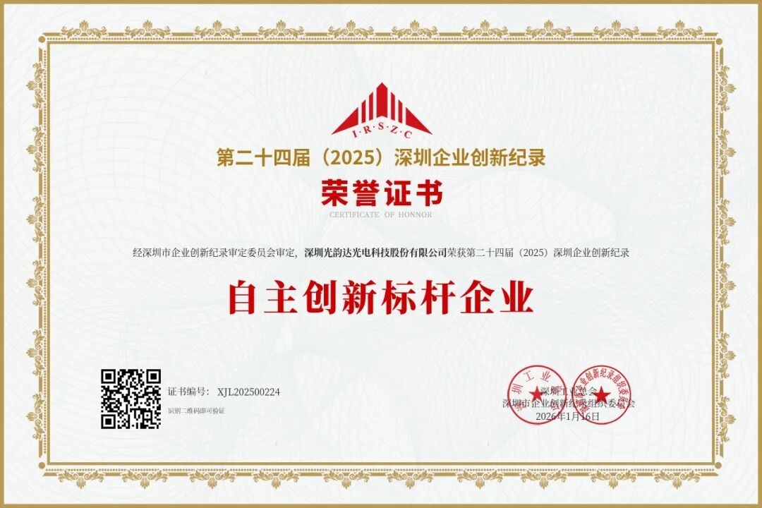 锚定“十五五”发展蓝图,扎根粤港澳大湾区创新沃土,“深圳企业创新纪录”审定发布活动创办于2002年,已持续开展二十四届。深圳光韵达光电科技股份有限公司在科技创新驱动高质量发展的时代浪潮中,持续迸发强劲创新活力。
