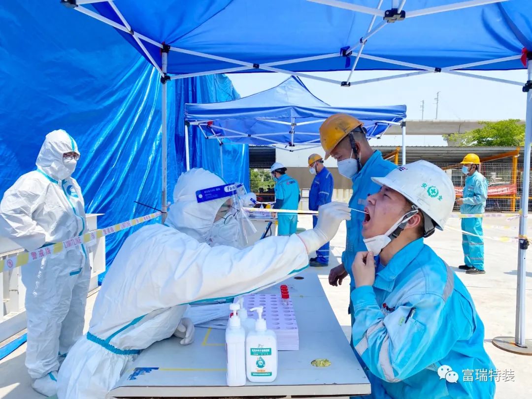自2月以来,富瑞特装全体工作人员共参与16次在厂核酸检测工作,共检测15000余人次。