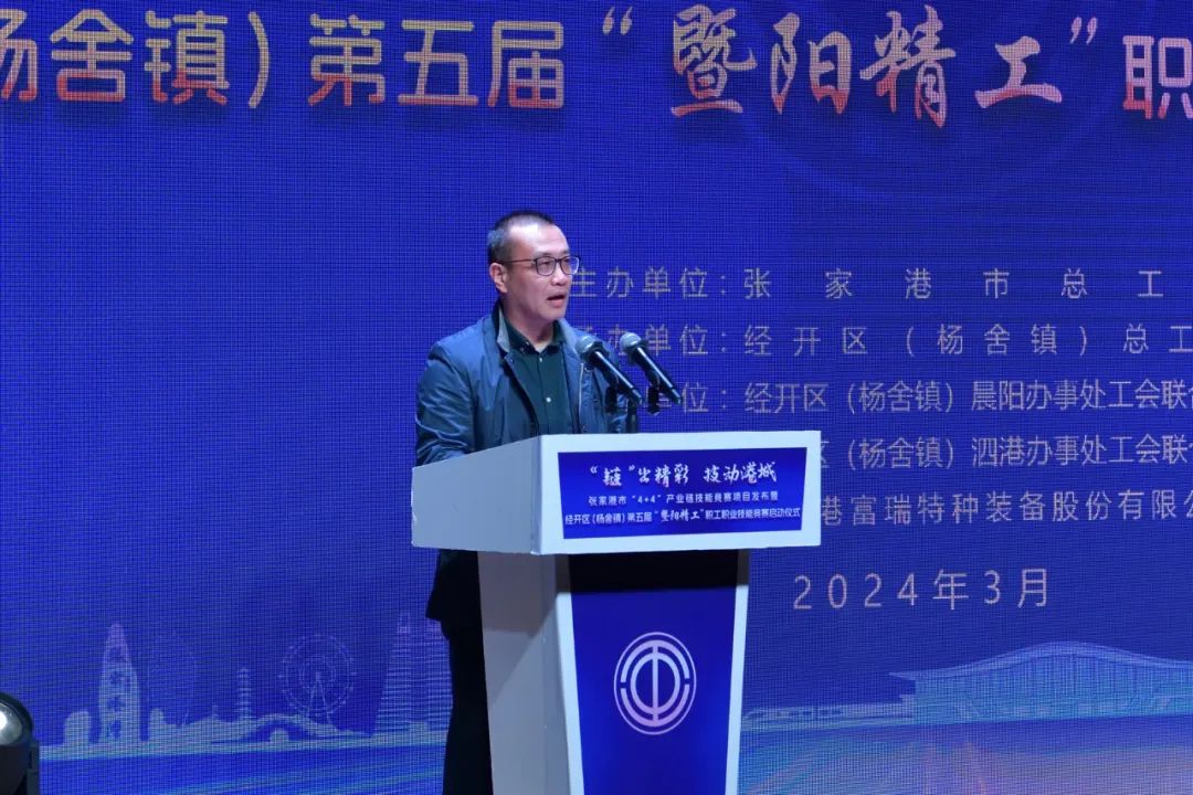 3月29日上午,张家港市4+4产业链技能竞赛项目发布暨经开区(杨舍镇)第五届“暨阳精工”职工职业技能竞赛启动仪式在张家港富瑞特种装备股份有限公司隆重举行,该活动由市总工会主办,经开区(杨舍镇)总工会承办,主题为“‘链’出精彩技动港城”。