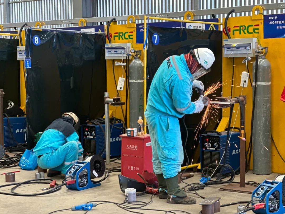 启动仪式结束后,全市新能源产业链压力容器焊接技能竞赛决赛在富瑞特装撬装6号车间拉开帷幕。来自全市相关行业16家企业的笔试前21名选手齐聚一堂,展开了一场激烈的实操角逐。