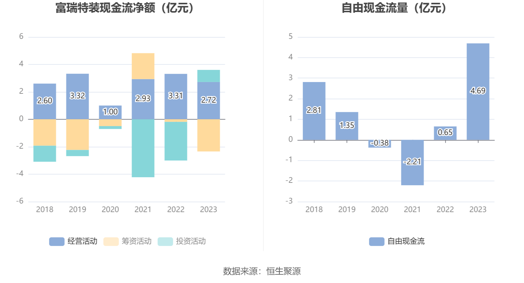 进一步统计发现,2023年公司自由现金流为4.69亿元,相比上年同期增长618.48%。