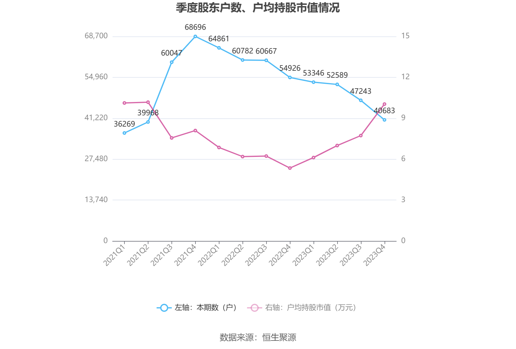 筹码集中度方面,截至2023年年末,公司股东总户数为4.07万户,较三季度末下降了6560户,降幅13.89%;户均持股市值由三季度末的7.73万元上升至10.04万元,增幅为29.88%。