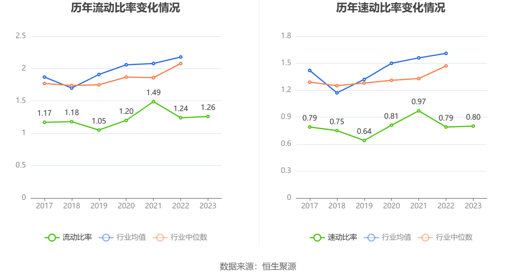 2023年,公司流动比率为1.26,速动比率为0.80。