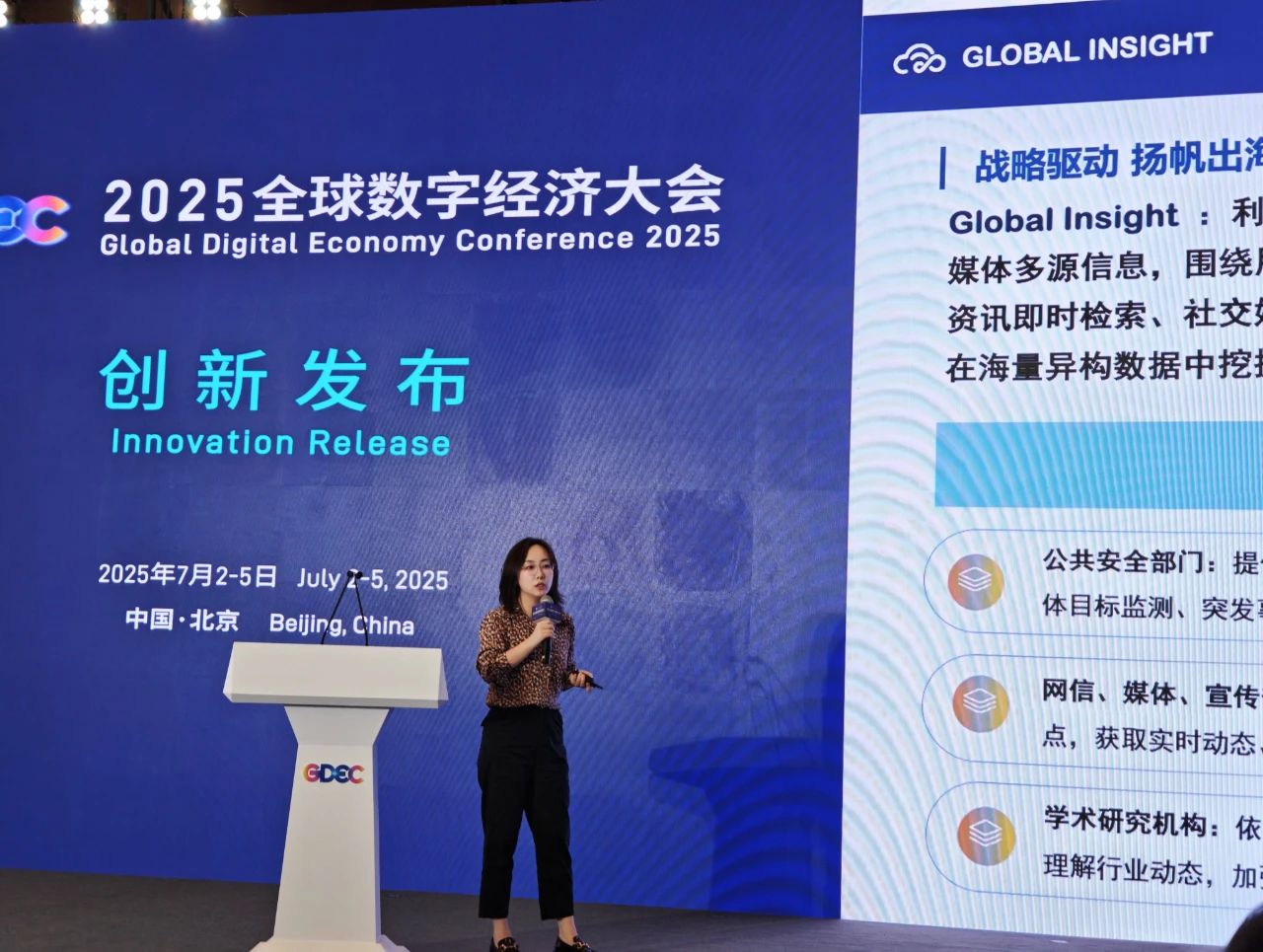 7月2日至5日,2025全球数字经济大会在北京国家会议中心举行,同期举办“首发首秀”特色活动,聚焦数字经济前沿领域新技术、新产品及场景应用解决方案首发推介,全景式展现数字技术赋能千行百业的生动实践。拓尔思受邀参会,在会上发布了自主研发的Global Insight(全球资讯洞察平台)。