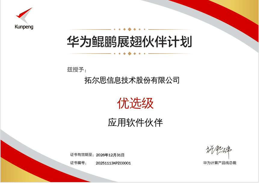 拓尔思加入华为鲲鹏展翅伙伴计划,不仅是对其技术实力和解决方案的高度认可,也反映出双方在共建计算生态、推动国产化技术落地方面的共识与决心。拓尔思将持续深化与华为的战略协同,依托鲲鹏深厚的技术资源积累、强大的数据底座能力,展开更加系统化、深层次的合作,共同拓展鲲鹏产业生态的边界与价值。