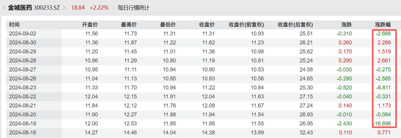 金城医药立案告知书公告披露后股价涨跌情况