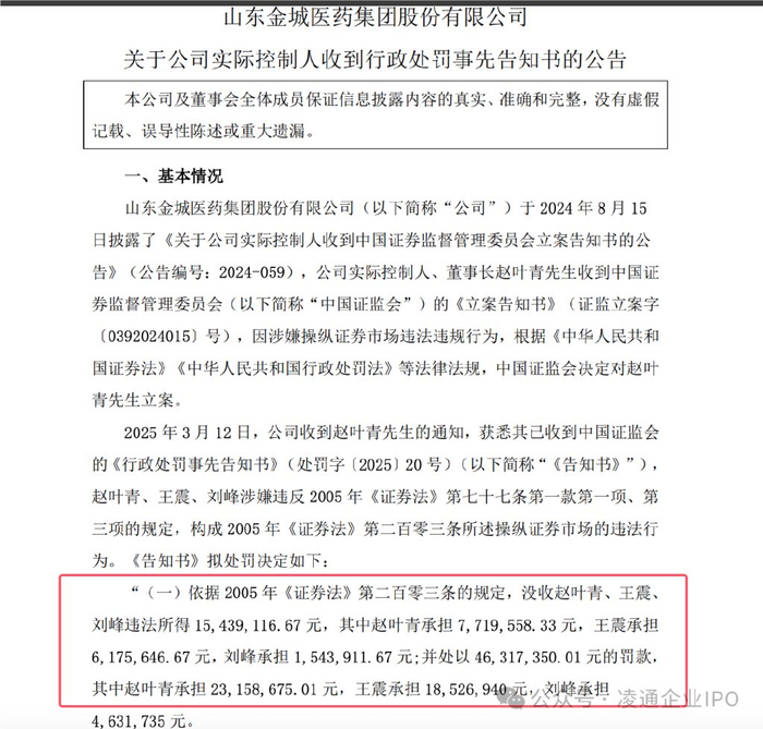 证监会听证有效:金城医药富豪董事长赵叶青博士等操纵股市罚款从6175万降至300万!市场禁入处罚不变!