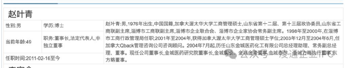 4 、公开信息显示,赵叶青:男,1976年出生,中国国籍,加拿大渥太华大学工商管理硕士,山东省第十二届、第十三届政协委员,山东省工商联副主席,淄博市工商联副主席,淄博市企业联合会、淄博市企业家协会常务副主席。1998年至2000年,在淄博市工商行政管理局任职;2001年至2004年,获得加拿大渥太华大学工商管理硕士学位;2003年12月至2004年6月,任加拿大Qback管理咨询公司咨询顾问。2004年7月起,历任山东金城医药化工有限公司总经理助理、常务副总经理、董事。年薪 200 多万,还有 722 万股票(大概 1.3 亿),这样一个博士富豪还要操纵市场?
