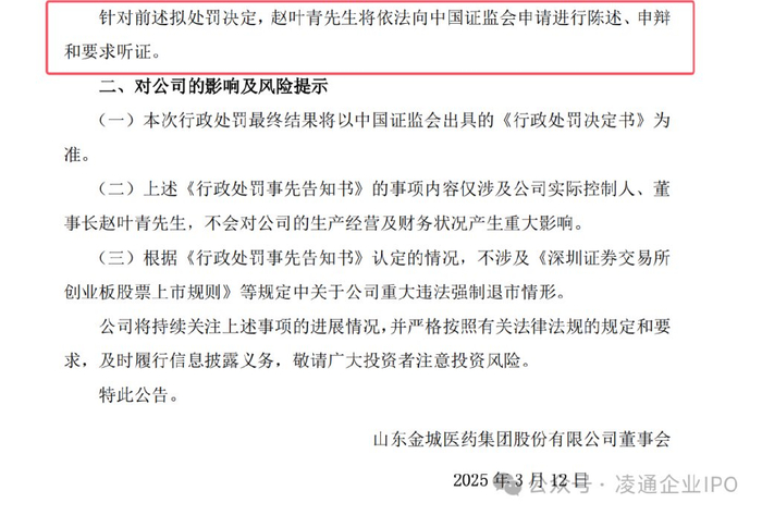 3 、当时,公司公告表示,针对本次拟处罚事项,赵叶青先生将依法向中国证监会申请进行陈述、申辩和要求听证。