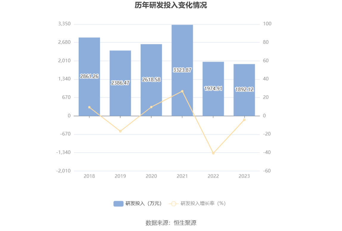 2023年全年,公司研发投入金额为1892.12万元,同比下降4.19%;研发投入占营业收入比例为18.60%,相比上年同期上升0.28个百分点。此外,公司全年研发投入资本化率为0。