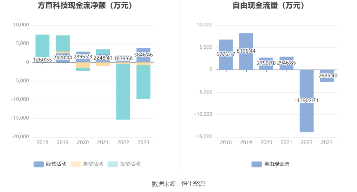 进一步统计发现,2023年公司自由现金流为-2685.40万元,上年同期为-13902.71万元。